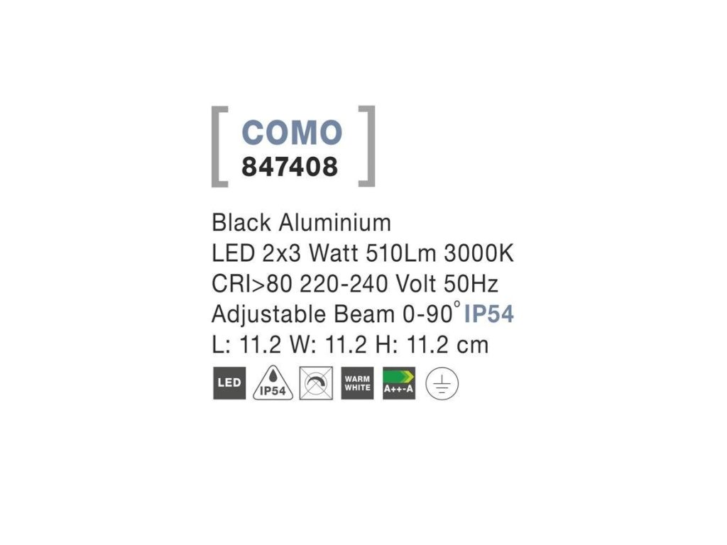 Venkovní nástěnné svítidlo COMO černý hliník LED 2x3W 3000K 220-240V nastavitelný úhel 0-90st. IP54 - NOVA LUCE