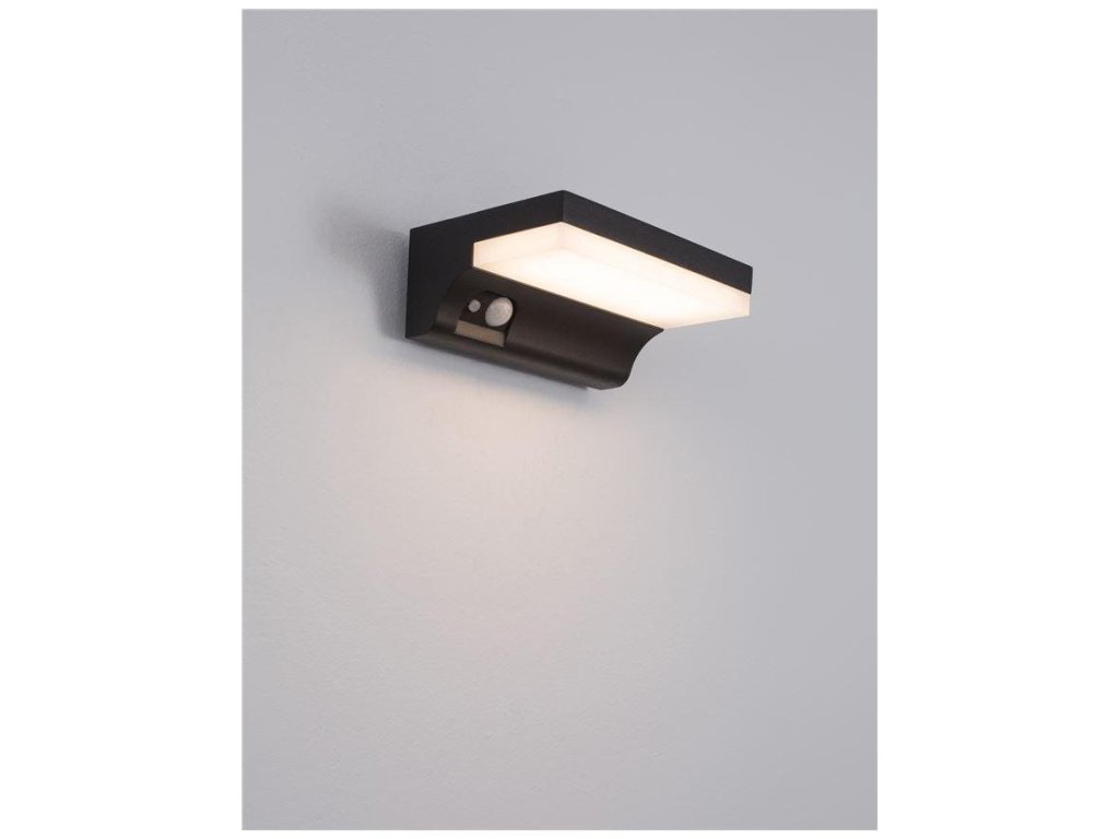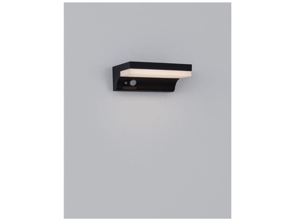 Venkovní nástěnné svítidlo DYN antracitový hliník a akrylový difuzor LED 1.5W 3000K 3.7V 110st. IP65 solární / vypínač na těle / pohybové čidlo - NOVA LUCE