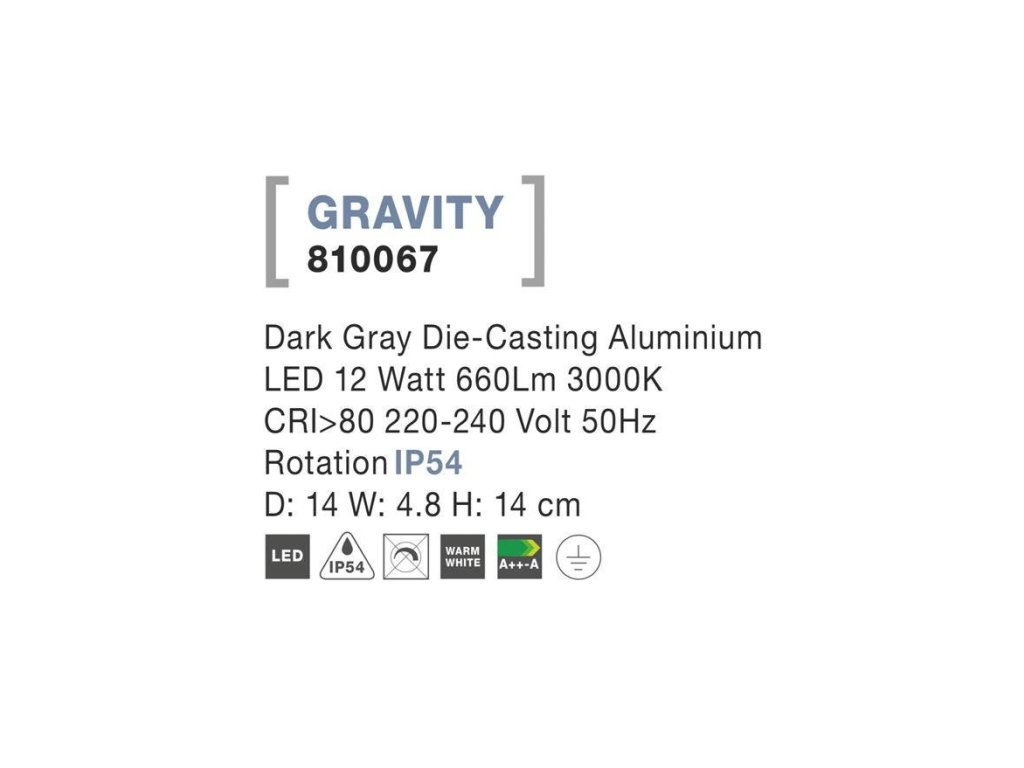 Venkovní nástěnné svítidlo GRAVITY tmavě šedý hliník akrylový difuzor LED 12W 3000K 220-240V rotační IP54 - NOVA LUCE