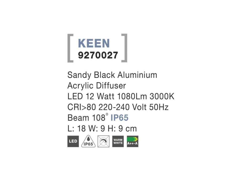 Venkovní nástěnné svítidlo KEEN černý hliník akrylový difuzor LED 12W 3000K 220-240V 108st. IP65 - NOVA LUCE
