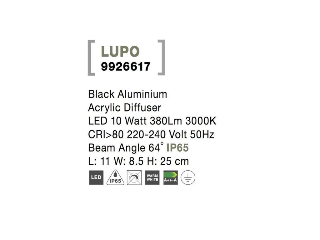 Venkovní nástěnné svítidlo LUPO černý hliník akrylový difuzor LED 10W 3000K 220-240V 64st. IP65 - NOVA LUCE