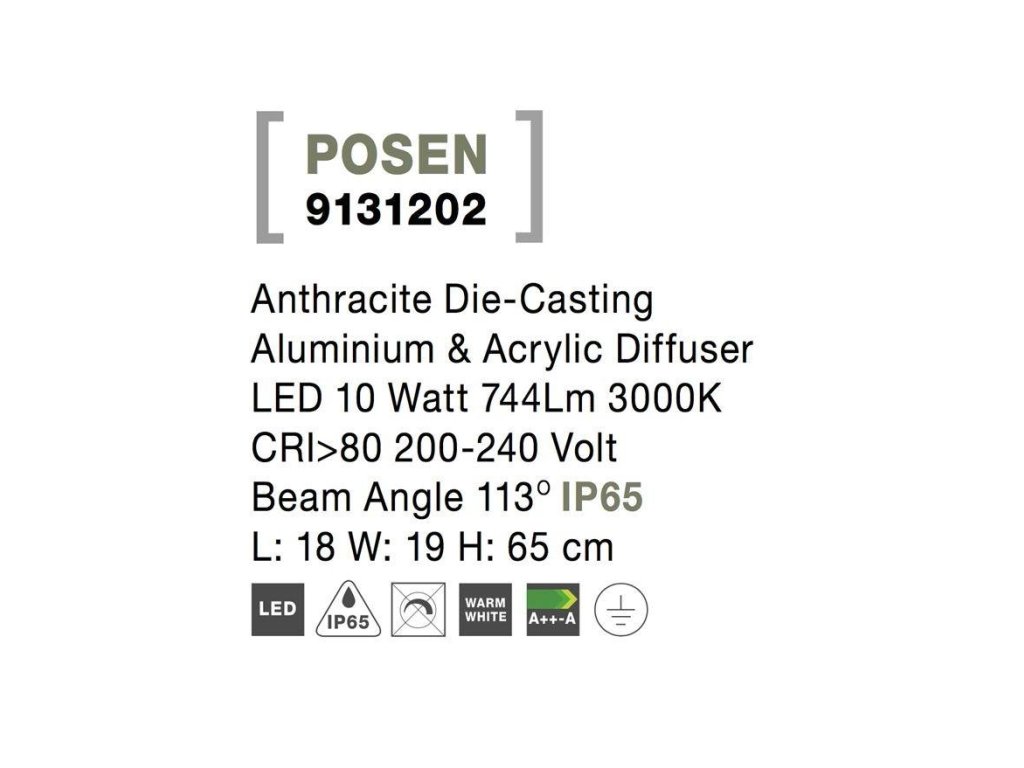 Venkovní nástěnné svítidlo POSEN antracitový hliník a akrylový difuzor LED 10W 3000K 200-240V 113st. IP65 - NOVA LUCE