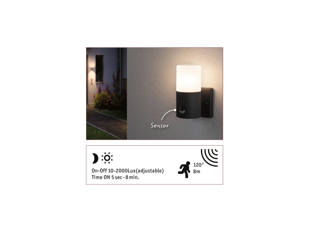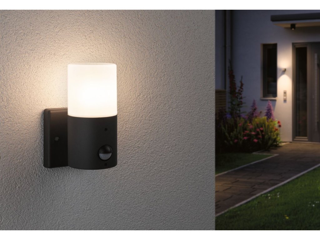 Venkovní nástěnné svítidlo Tubs pohybové čidlo IP44 kruhové 105x130mm max. 15W 230V šedá mat kov/umělá hmota - PAULMANN