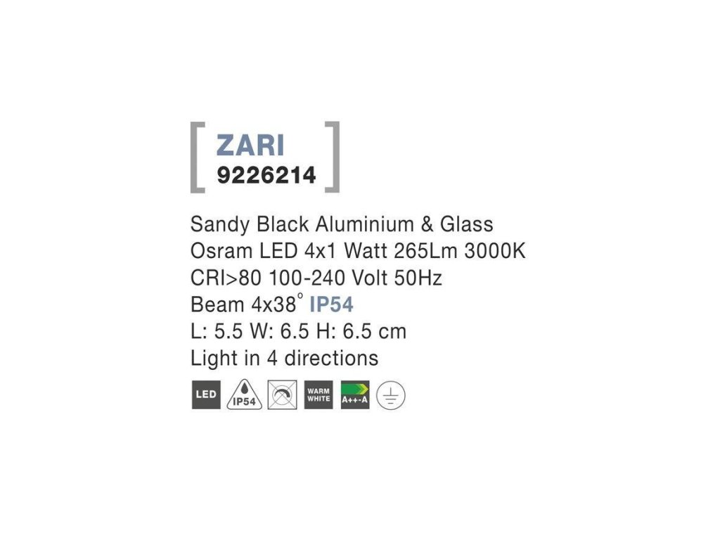 Venkovní nástěnné svítidlo ZARI černý hliník a sklo Osram LED 4x1W 3000K 100-240V 4x38st. IP54 světlo ve čtyřech směrech - NOVA LUCE