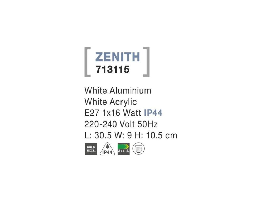 Venkovní nástěnné svítidlo ZENITH bílý hliník bílý akrylový difuzor E27 1x12W 220-240V bez žárovky IP44 - NOVA LUCE