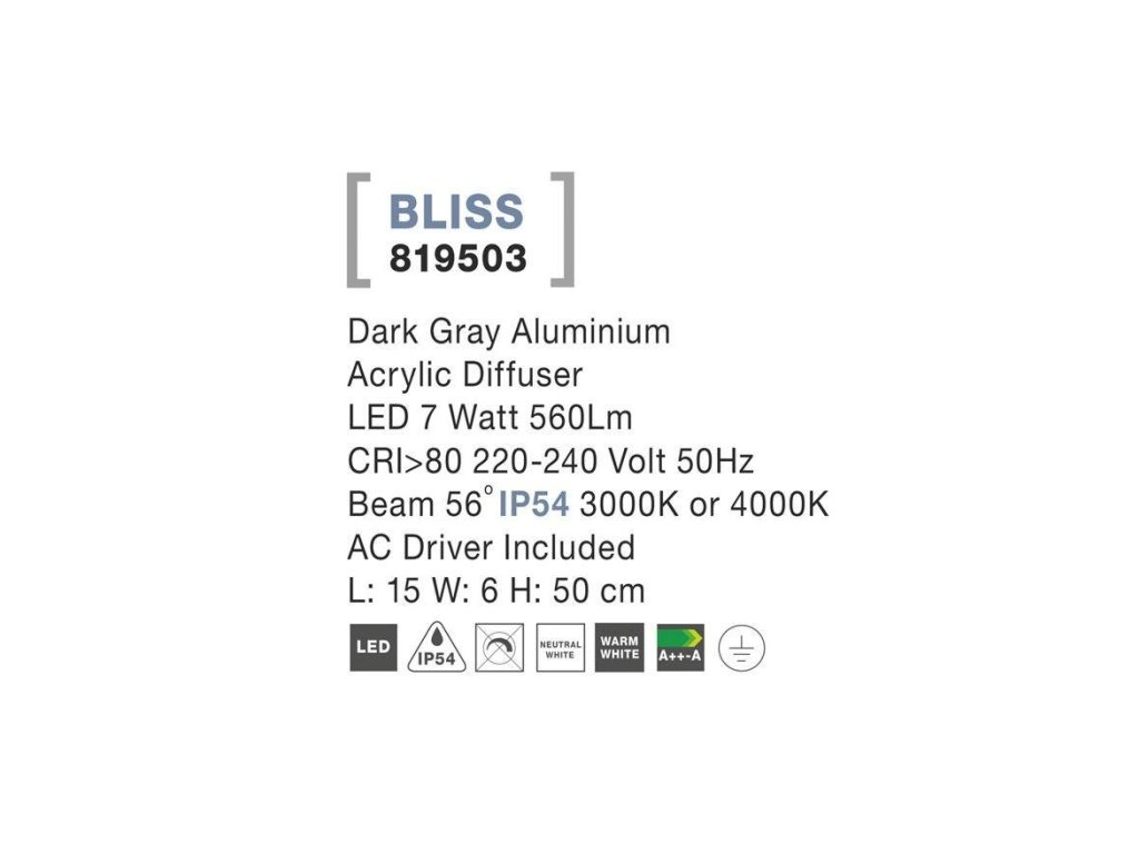 Venkovní sloupkové svítidlo BLISS tmavě šedý hliník akrylový difuzor LED 7W 3000K 220-240V 56st. IP54 vč. driveru - NOVA LUCE