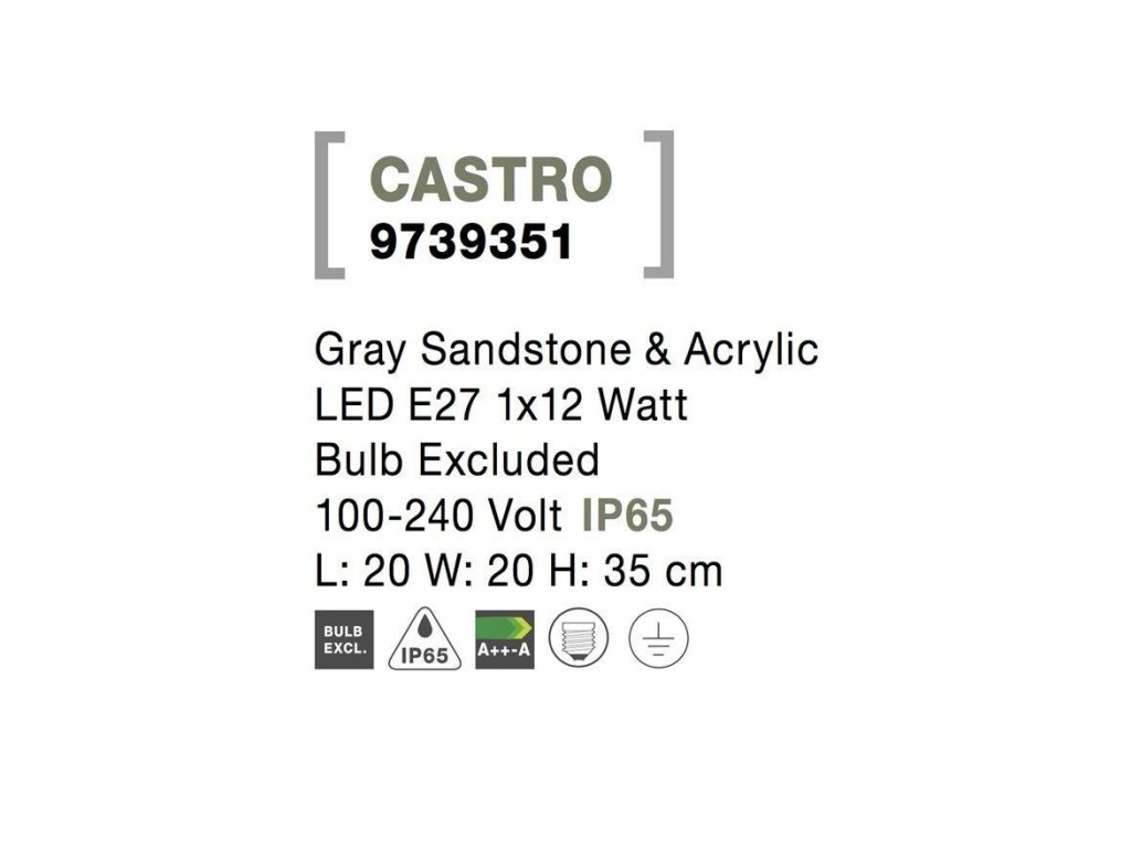Venkovní sloupkové svítidlo CASTRO šedý pískovec a akryl E27 1x12W bez žárovky 100-240V IP65 - NOVA LUCE