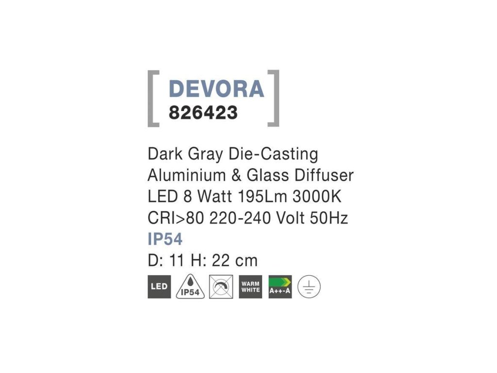 Venkovní sloupkové svítidlo DEVORA tmavě šedý hliník a skleněný difuzor LED 8W 3000K 220-240V IP54 - NOVA LUCE