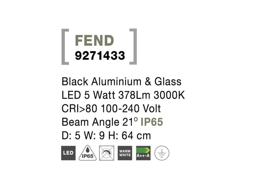 Venkovní sloupkové svítidlo FEND černý hliník a sklo LED 5W 3000K 100-240V 21st. IP65 - NOVA LUCE