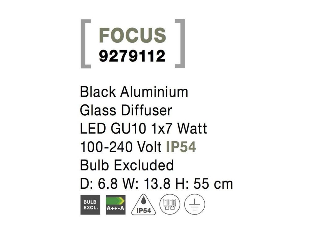 Venkovní sloupkové svítidlo FOCUS černý hliník skleněný difuzor GU10 1x7W 100-240V IP54 bez žárovky - NOVA LUCE