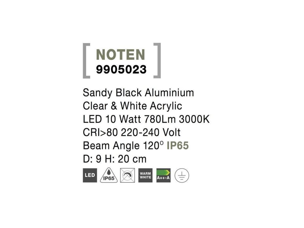 Venkovní sloupkové svítidlo NOTEN černý hliník čirý a bílý akryl LED 8W 3000K 220-240V IP65 120st. IP65 - NOVA LUCE
