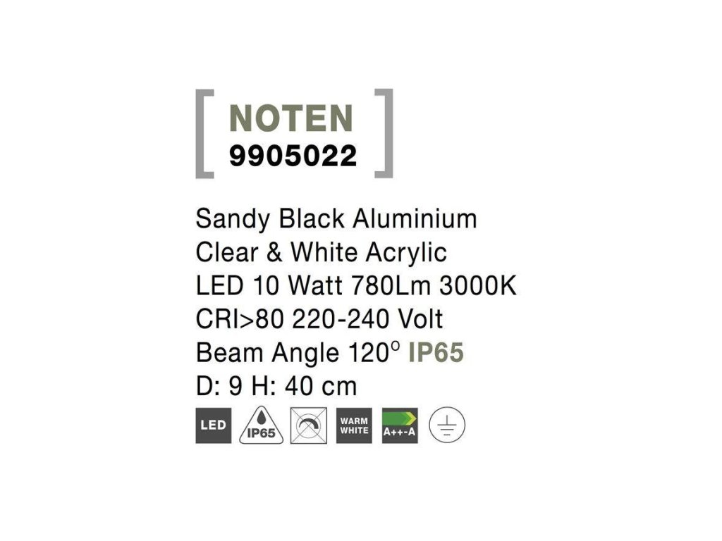 Venkovní sloupkové svítidlo NOTEN černý hliník čirý a bílý akryl LED 8W 3000K 220-240V IP65 120st. IP65 - NOVA LUCE