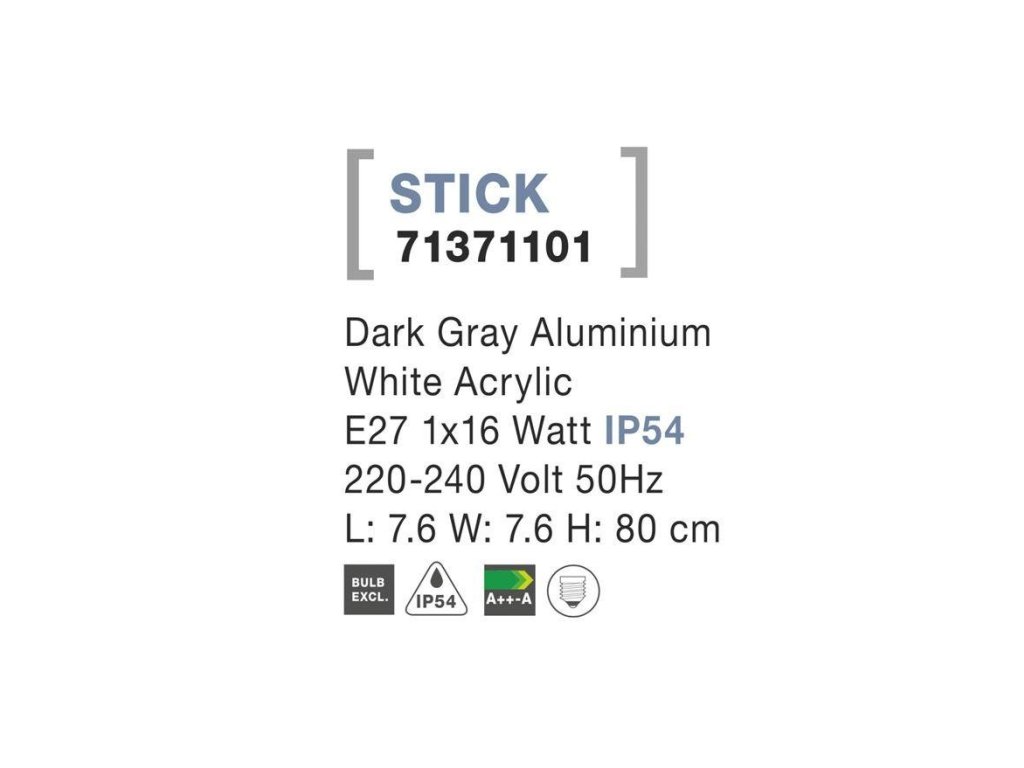 Venkovní sloupkové svítidlo STICK tmavě šedý hliník bílý akryl E27 1x12W 220-240V IP54 bez žárovky - NOVA LUCE