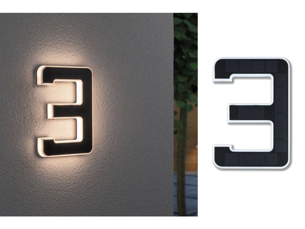 Venkovní solární domovní číslo 3 IP44 3.000K 0,2W nabíjecí baterie výměnná - PAULMANN