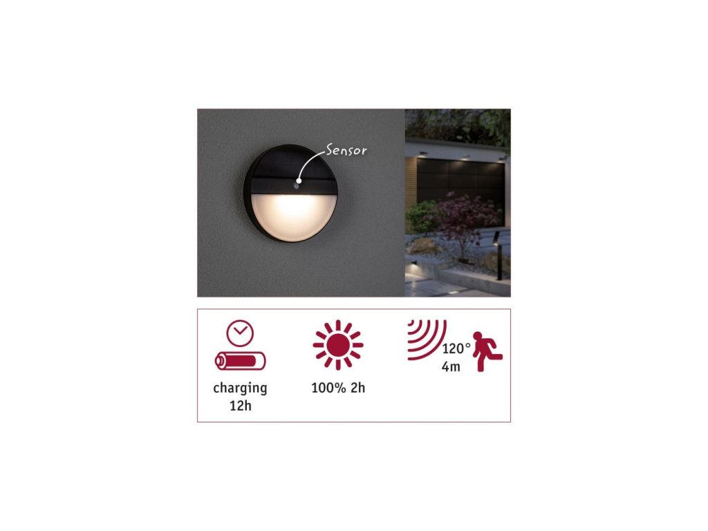 Venkovní solární nástěnné svítidlo Elois antracit pohybové čidlo 3000K - PAULMANN