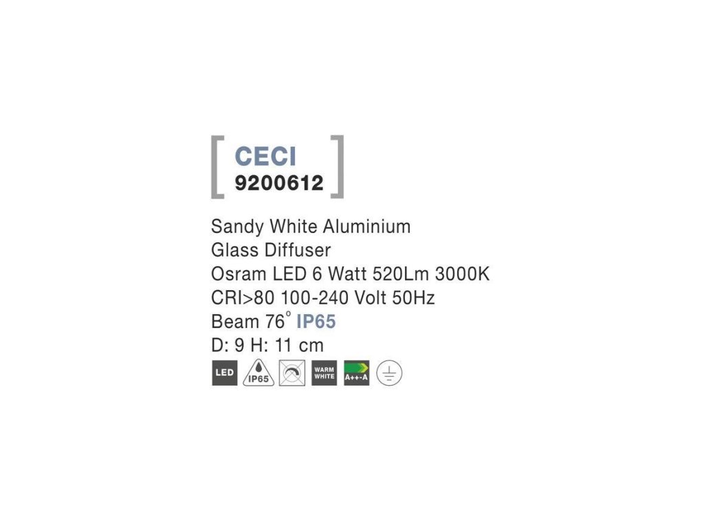 Venkovní stropní svítidlo CECI bílý hliník skleněný difuzor Osram LED 6W 3000K 100-240V 76st. IP65 - NOVA LUCE