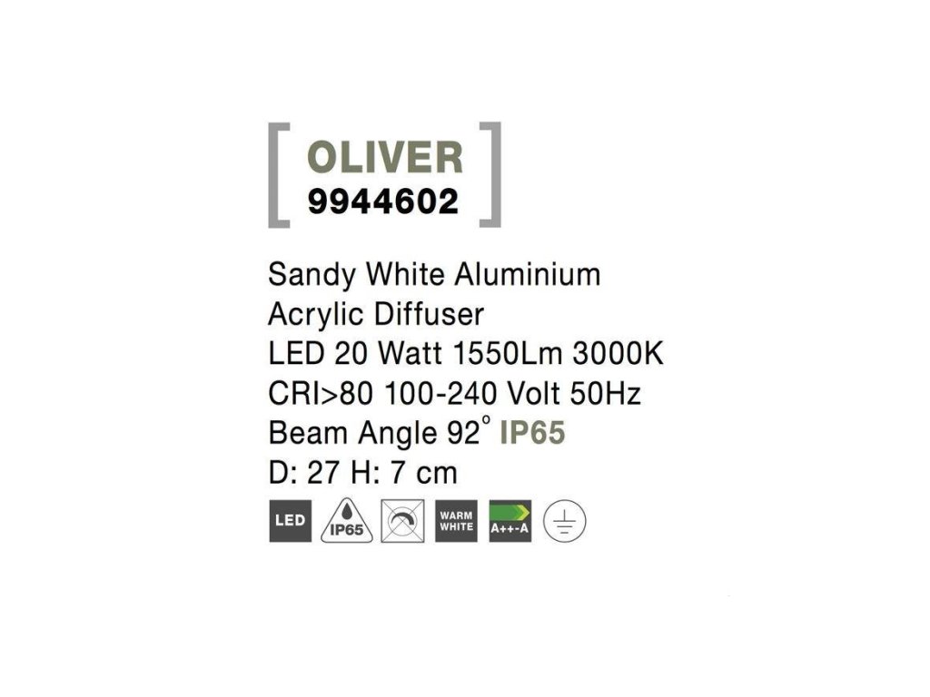 Venkovní stropní svítidlo OLIVER bílý hliník akrylový difuzor LED 20W 3000K 100-240V 92st. IP65 - NOVA LUCE
