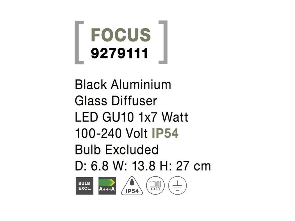 Venkovní svítidlo s bodcem FOCUS černý hliník skleněný difuzor GU10 1x7W 100-240V IP54 bez žárovky - NOVA LUCE