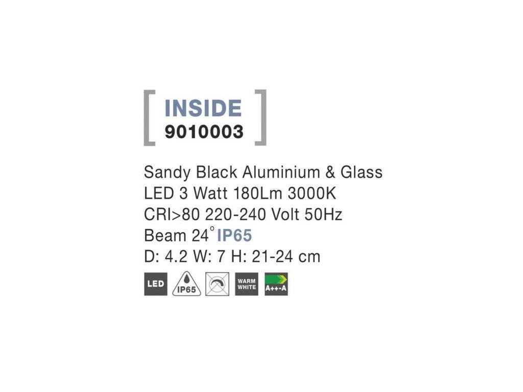 Venkovní svítidlo s bodcem INSIDE černý hliník a sklo LED 3W 3000K 220-240V 24st. IP65 - NOVA LUCE
