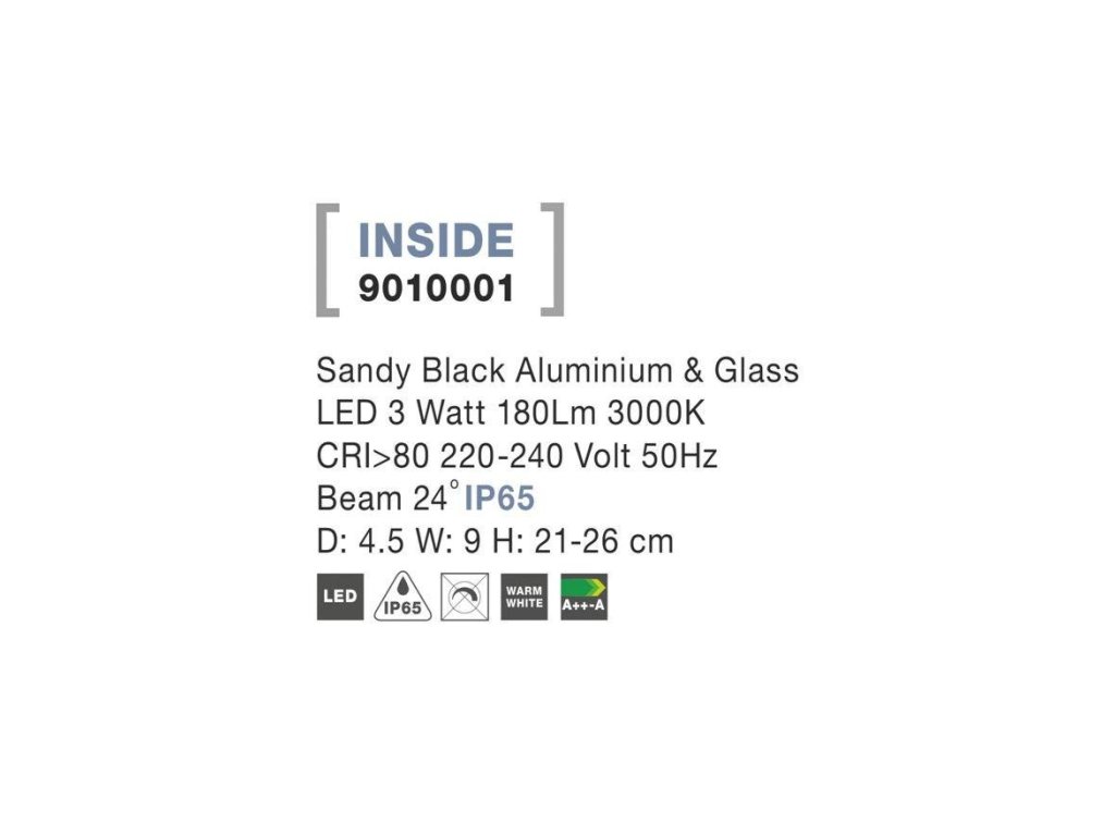 Venkovní svítidlo s bodcem INSIDE černý hliník a sklo LED 3W 3000K 220-240V 24st. IP65 - NOVA LUCE