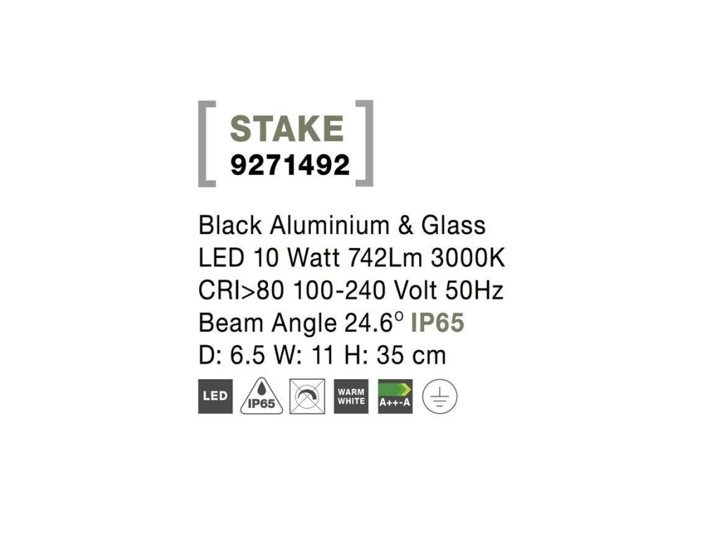 Venkovní svítidlo s bodcem STAKE černý hliník a sklo LED 10W 3000K 100-240V 24st. IP65 - NOVA LUCE