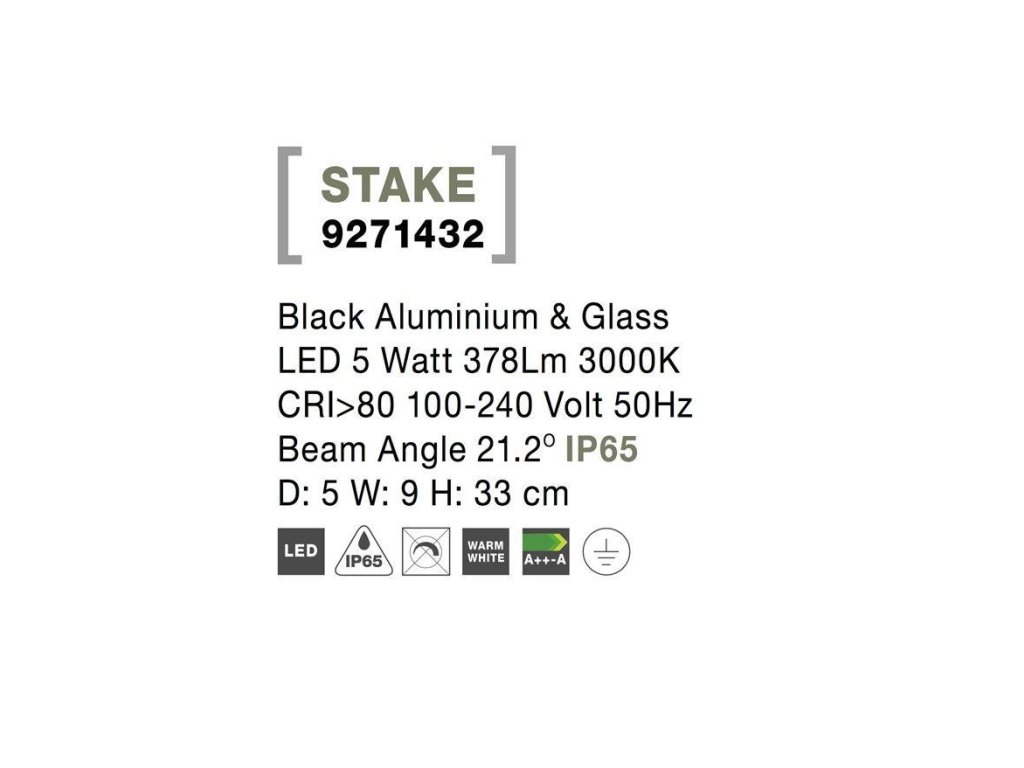 Venkovní svítidlo s bodcem STAKE černý hliník a sklo LED 5W 3000K 100-240V 21st. IP65 - NOVA LUCE