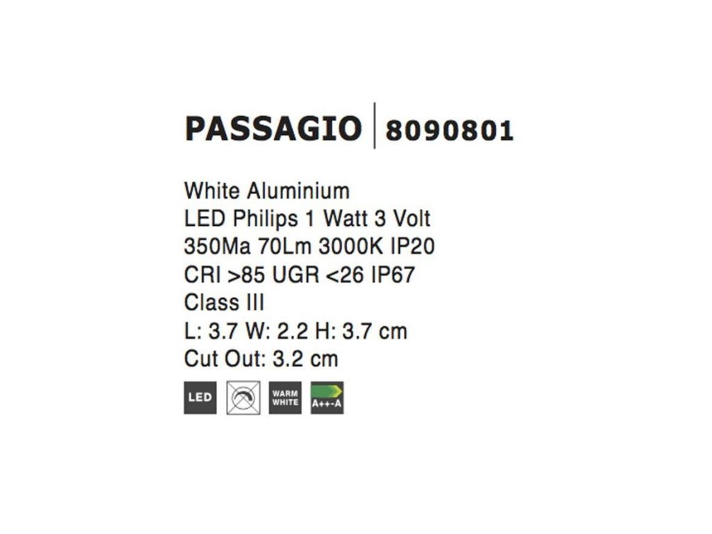 Venkovní zapuštěné svítidlo do zdi PASSAGGIO bílý hliník LED 1W 3000K 3V IP54 délka kabelu 1.80m použijte driver 9020170 - NOVA LUCE