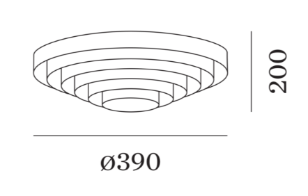 Svítidlo má průměr 390 mm, výšku 200 mm a váží 4 kg. Krytí IP20 značí, že je vhodné pro vnitřní použití, např. do obývacího pokoje, vstupní haly nebo stylové kavárny. Přisazená montáž na strop umožňuje jednoduchou instalaci.