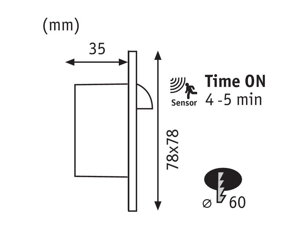 Zápustné svítidlo Wand hranaté se senzorem do krabičky KU68 1,7W 100lm 230V - PAULMANN
