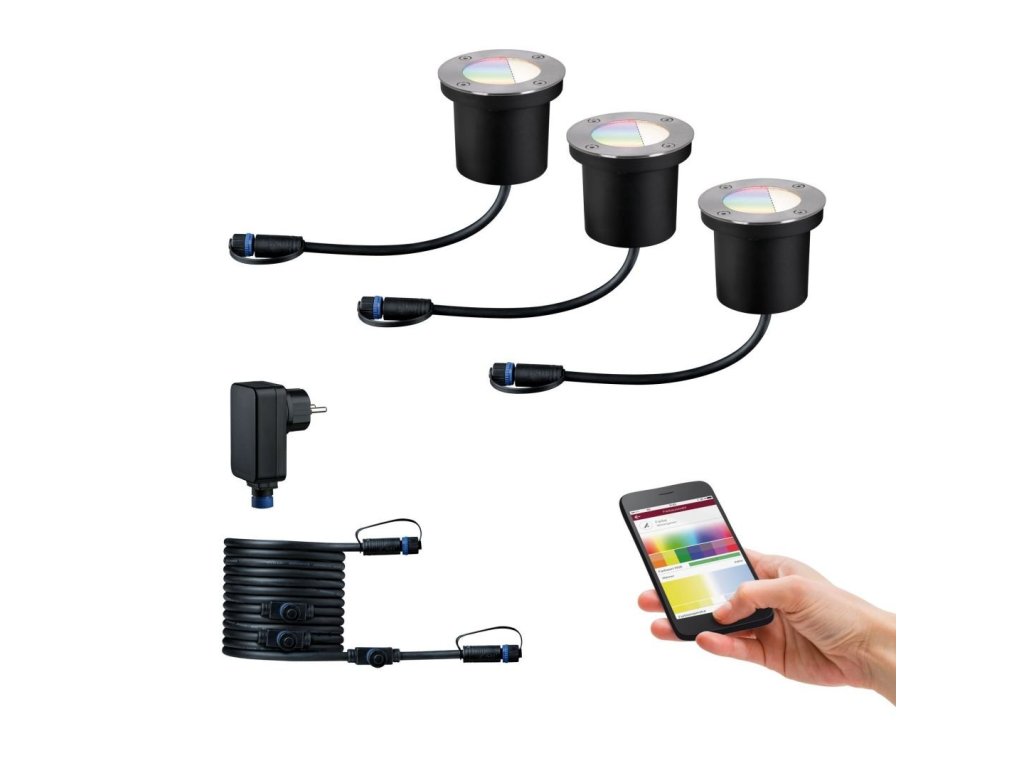 Zápustné zemní svítidlo Plug & Shine základní sada 3ks IP65 RGBW 24V ZigBee - PAULMANN