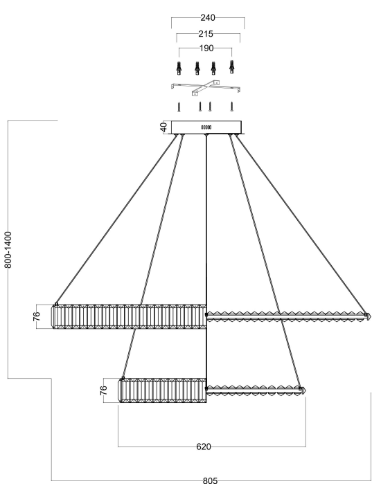 - Rozměry: průměr 1000 mm, výška až 1500 mm (délka stínidla 500 mm)