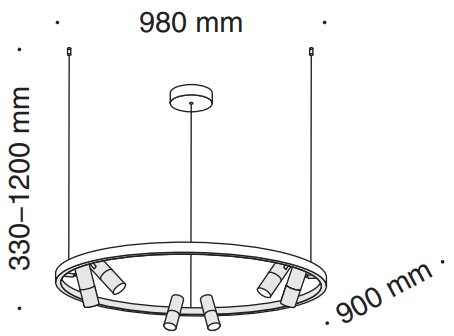 - Výška: 1 200 mm (délka závěsu max. 1 000 mm)