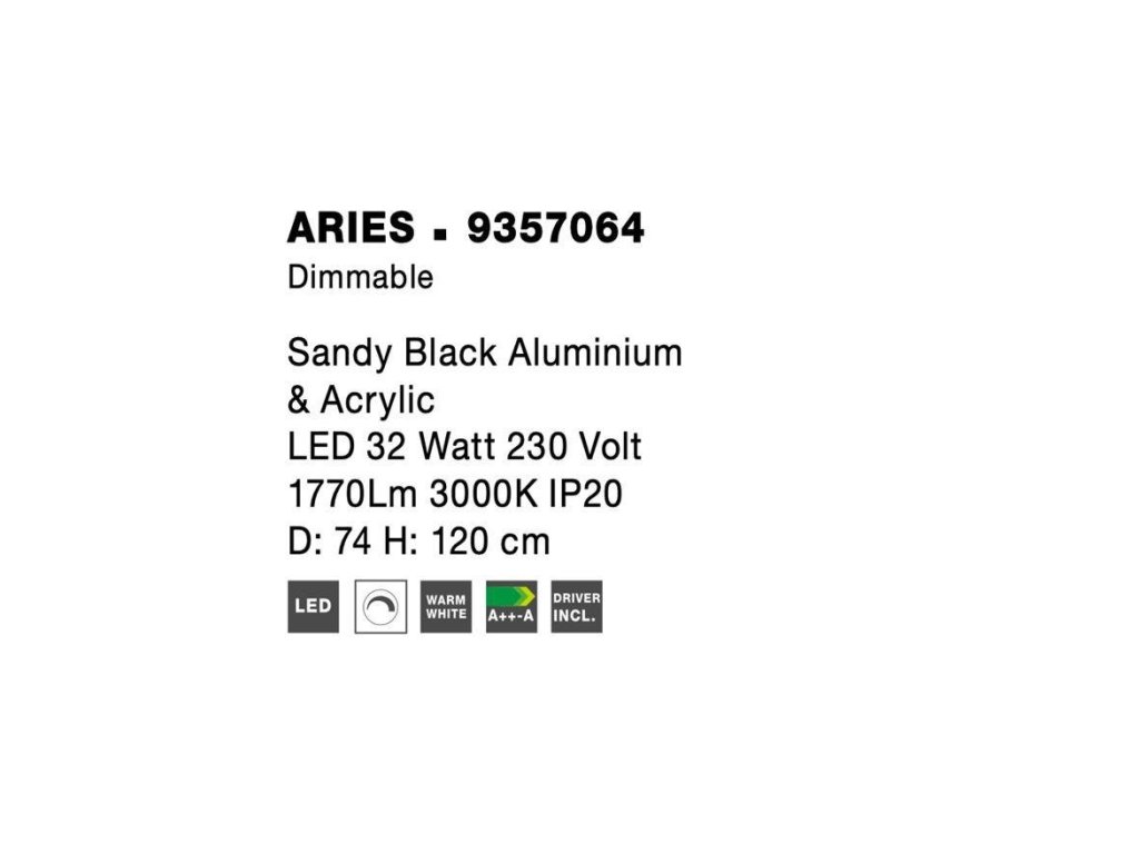 Závěsné svítidlo ARIES černý hliník a akryl LED 32W 230V 3000K IP20 stmívatelné - NOVA LUCE