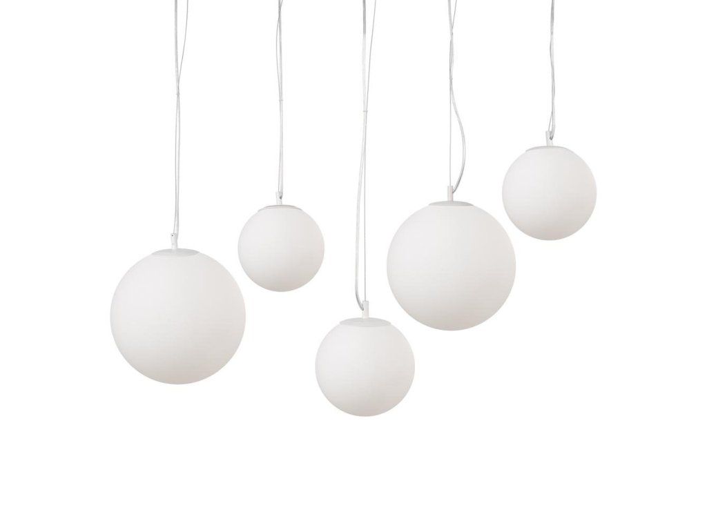 Závěsné svítidlo MAYTONI Basic form představuje ideální volbu pro milovníky moderního a nadčasového designu. Pět matných koulí zavěšených na elegantních lankách tvoří harmonický celek, který vynikne v prostorných interiérech - ať už v obývacím pokoji, jídelně, vstupní hale nebo reprezentativním lobby. Minimalistická bílá barva a kovový základ zaručují snadné začlenění do jakéhokoliv stylu interiéru a podtrhnou jeho čistotu a vzdušnost.