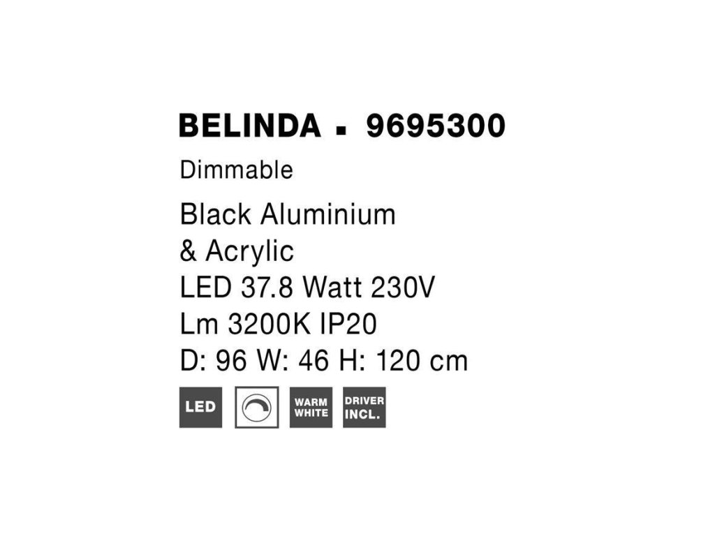 Závěsné svítidlo BELINDA černý hliník a akryl LED 41W 230V 3200K IP20 stmívatelné - NOVA LUCE