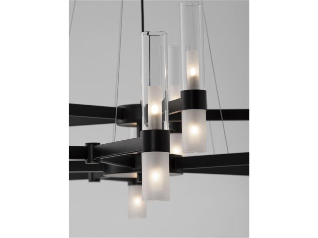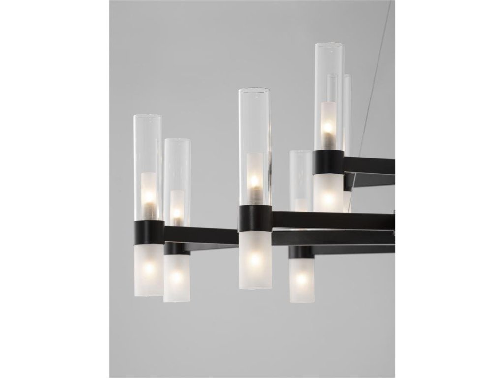 Závěsné svítidlo CENTURY matná černá a čiré a matné sklo (2m ocelové lanko) 12xG9 - NOVA LUCE