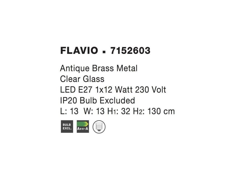 Závěsné svítidlo FLAVIO antický kov mosaz čiré sklo E27 1x12W 230V IP20 bez žárovky - NOVA LUCE