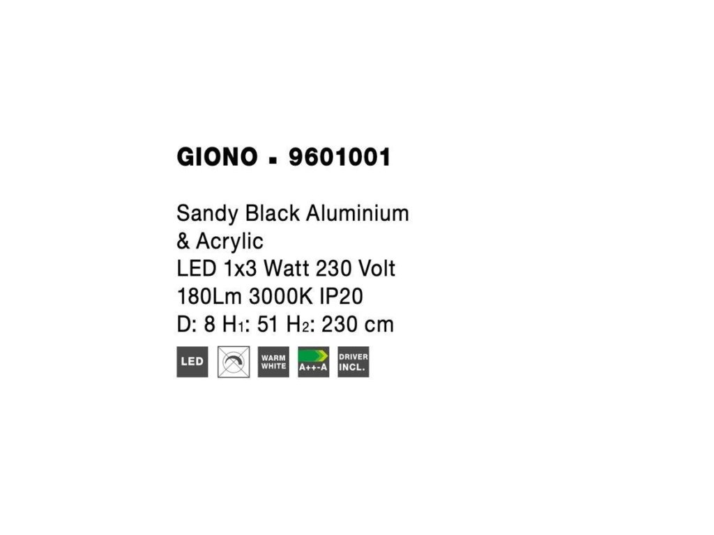Závěsné svítidlo GIONO černý hliník a akryl LED 1x3W 230V 3000K IP20 - NOVA LUCE