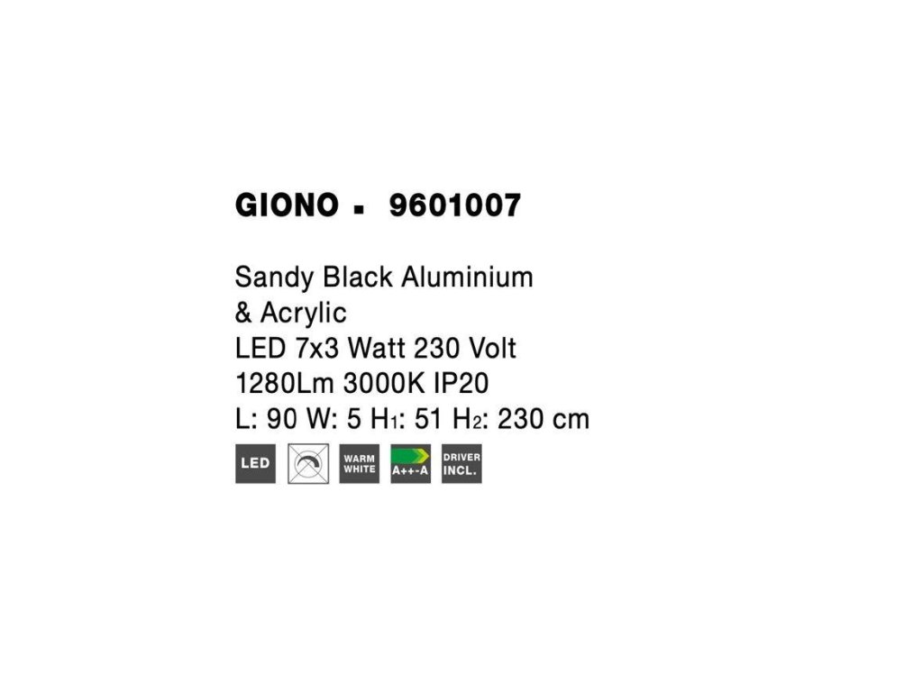 Závěsné svítidlo GIONO černý hliník a akryl LED 7x3W 230V 3000K IP20 - NOVA LUCE