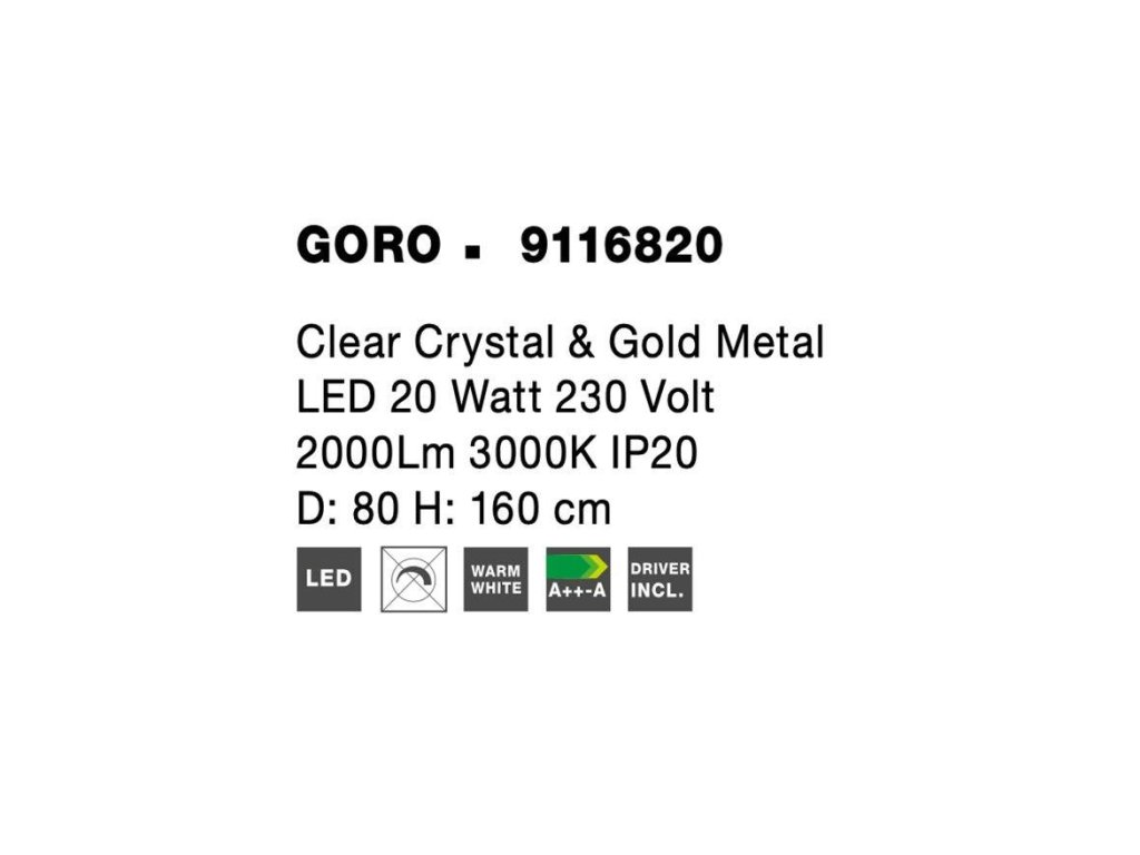 Závěsné svítidlo GORO čirý křišťál a zlatý kov LED 20W 230V 3000K IP20 - NOVA LUCE