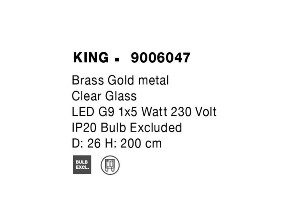 Závěsné svítidlo KING mosazný zlatý kov foukané čiré sklo G9 1x5W 230V IP20 bez žárovky - NOVA LUCE