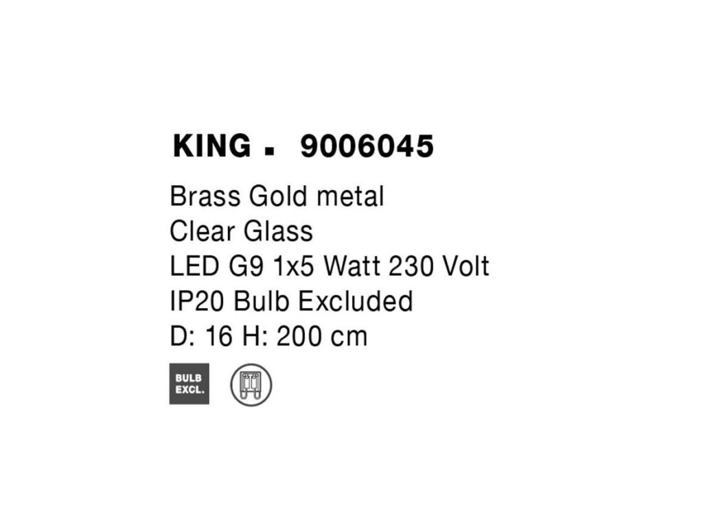 Závěsné svítidlo KING mosazný zlatý kov foukané čiré sklo G9 1x5W 230V IP20 bez žárovky - NOVA LUCE