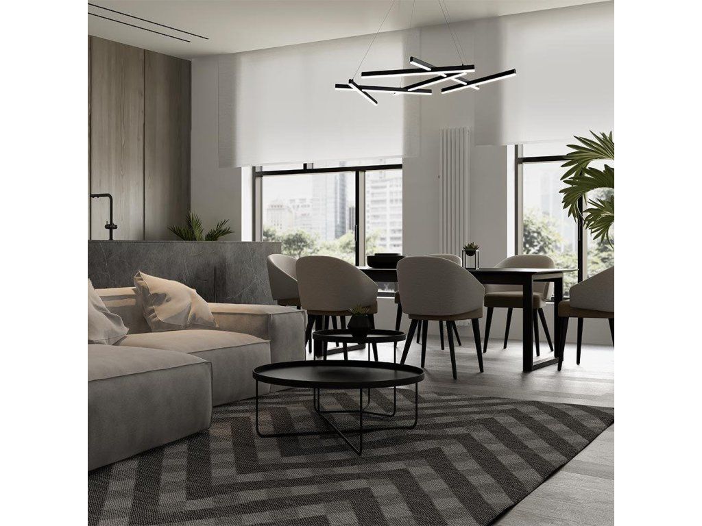 Designové závěsné svítidlo MAYTONI Line představuje dokonalou volbu pro interiéry, které si zakládají na originalitě a moderním stylu. Precizně zpracovaný kovový rám v černé barvě v kombinaci s akrylátovými difuzory vytváří výrazný, futuristický prvek nad jídelním stolem, v obývacím pokoji nebo reprezentativní kanceláři.