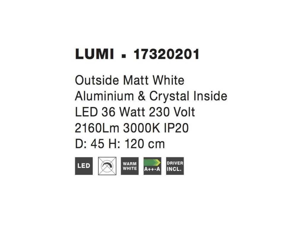 Závěsné svítidlo LUMI zvenku matný bílý hliník a křišťál uvnitř LED 36W 3000K IP20 - NOVA LUCE