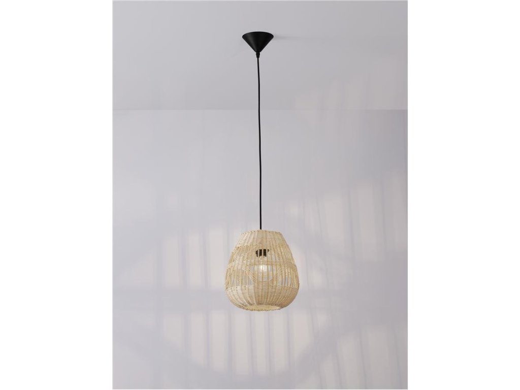 Závěsné svítidlo MARLO přírodní ratan černý kabel E27 1x12W 230V IP20 bez žárovky - NOVA LUCE