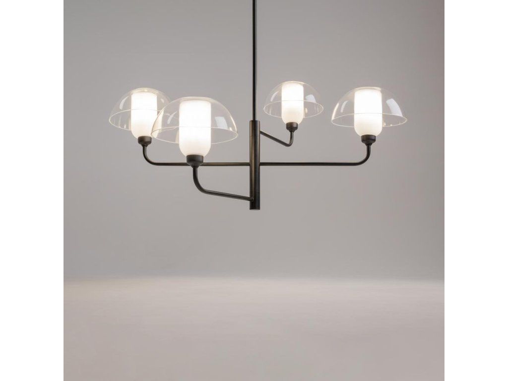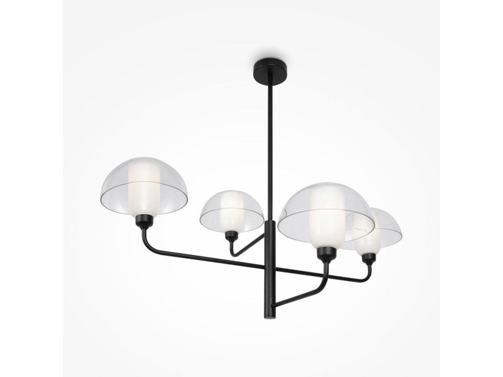 Závěsné svítidlo MAYA v černém kovovém provedení je ideální nad jídelní stůl, do obývacího pokoje i ložnice. Nabízí 4 patice E14 pro flexibilní volbu světla. Délka 90,6 cm.