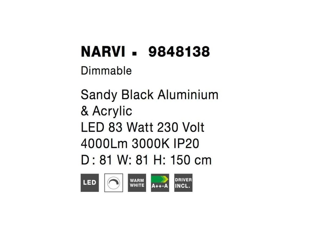 Závěsné svítidlo NARVI černý hliník a akryl LED 83W 230V 3000K IP20 stmívatelné - NOVA LUCE