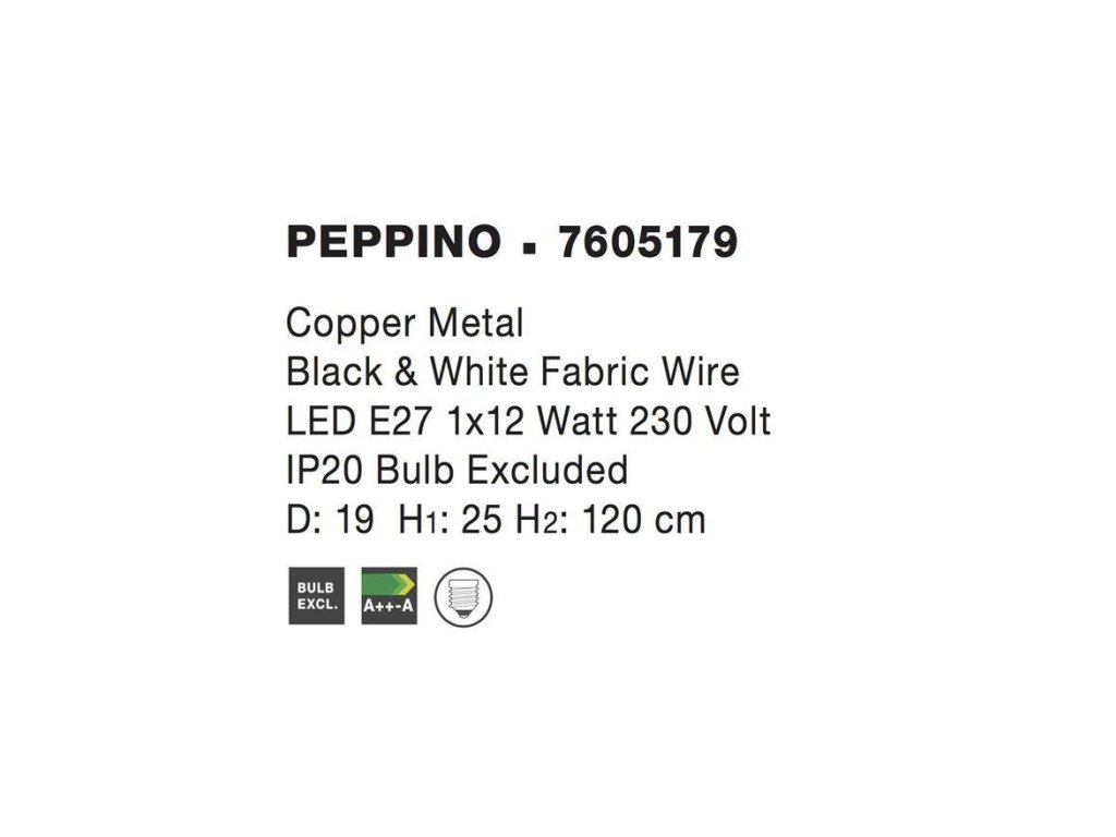 Závěsné svítidlo PEPPINO matná měď černý a bílý kabel E27 1x12W - NOVA LUCE