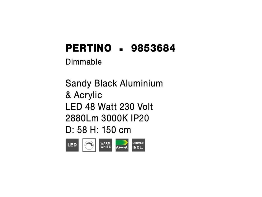 Závěsné svítidlo PERTINO černý hliník a akryl LED 48W 230V 3000K IP20 stmívatelné - NOVA LUCE