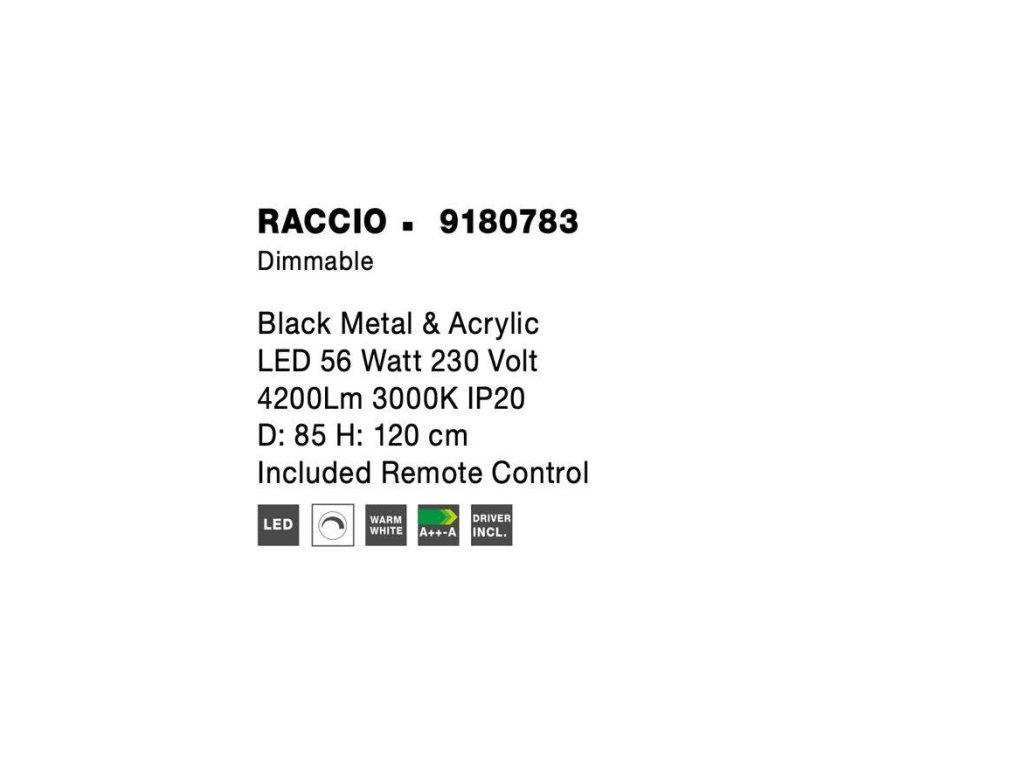 Závěsné svítidlo RACCIO černý kov a akryl LED 56W 230V 3000K IP20 vč. dálkového ovládání stmívatelné - NOVA LUCE